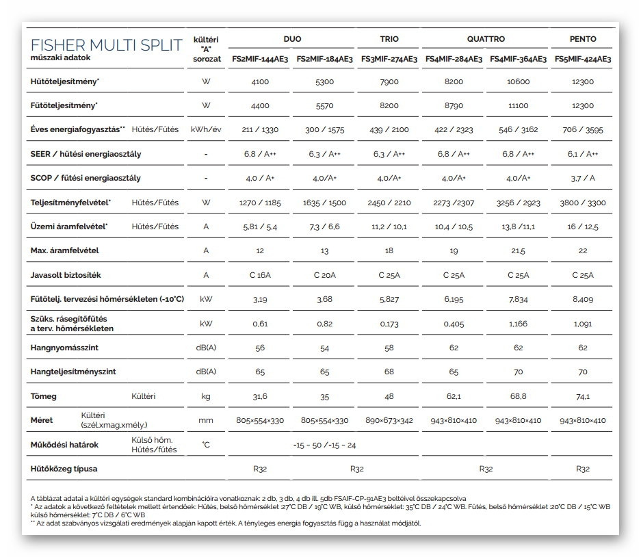 A Fisher FS4MIF-364AE3 Multi klíma kültéri egység (max. 4 beltéri egységhez) fontos tulajdonságai: