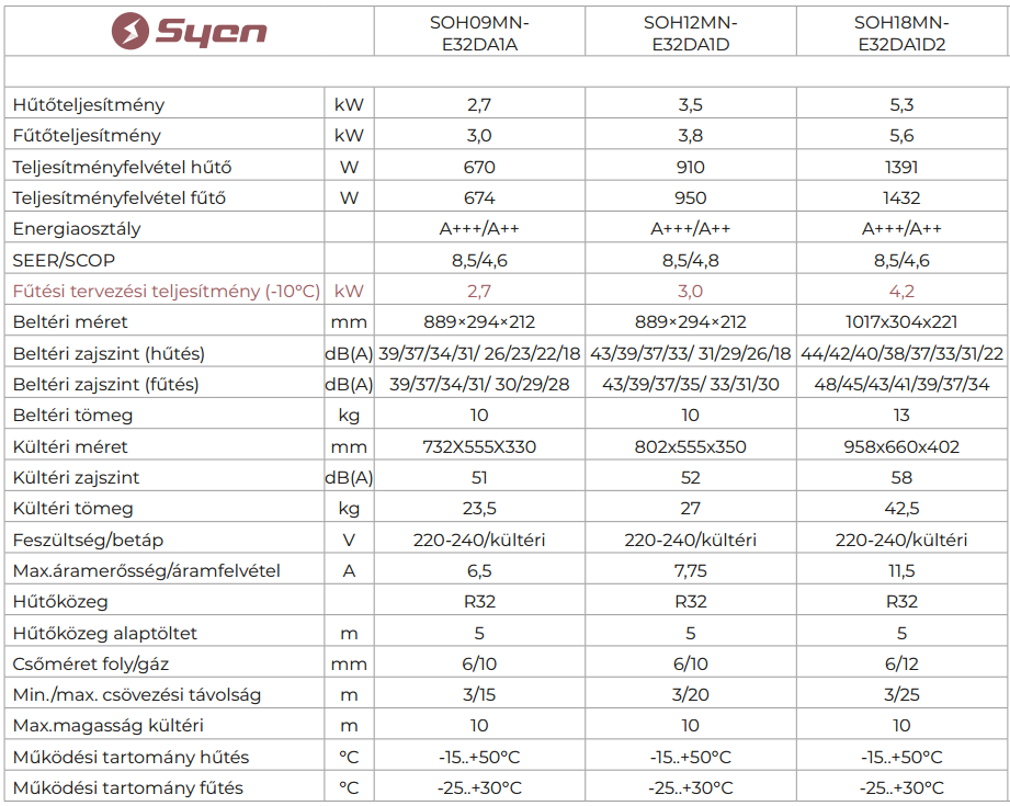 A Syen SOH18MN-E32DA1D2 Muse Next Inverteres Split klíma fontos tulajdonságai: